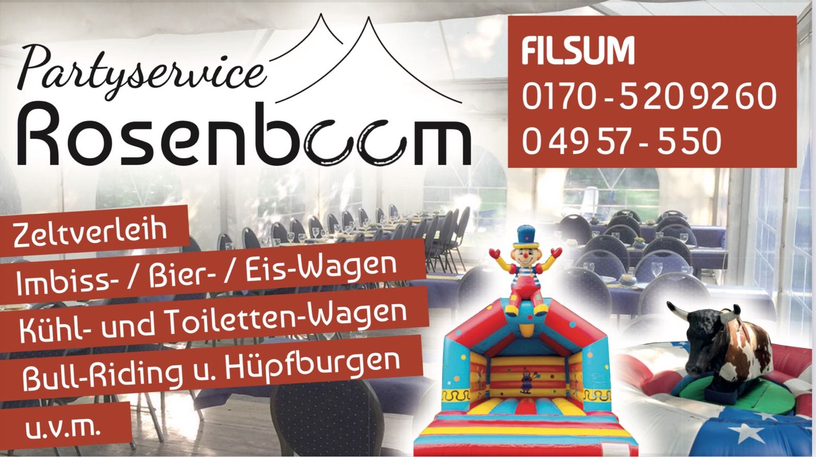Wir – der Partyservice Rosenboom - bieten eine einfache und unkomplizierte Lösung für Ihr nächste Event. Wir haben jahrelange Erfahrung im Organisieren von Veranstaltungen und bieten eine große Auswahl an Equipment. Unser kleines Team arbeitet eng mit Ihnen zusammen, um sicherzustellen, dass Ihre Veranstaltung genauso abläuft, wie Sie es sich vorstellen. Von der Ape bis zum Zelt – bei uns bekommen Sie alles aus einer Hand. Unser Anspruch ist ein unvergesslicher Tag für Sie uns Ihre Gäste. Wir freuen uns darauf, Ihnen bei Ihrer nächsten Veranstaltung zu unterstützen !